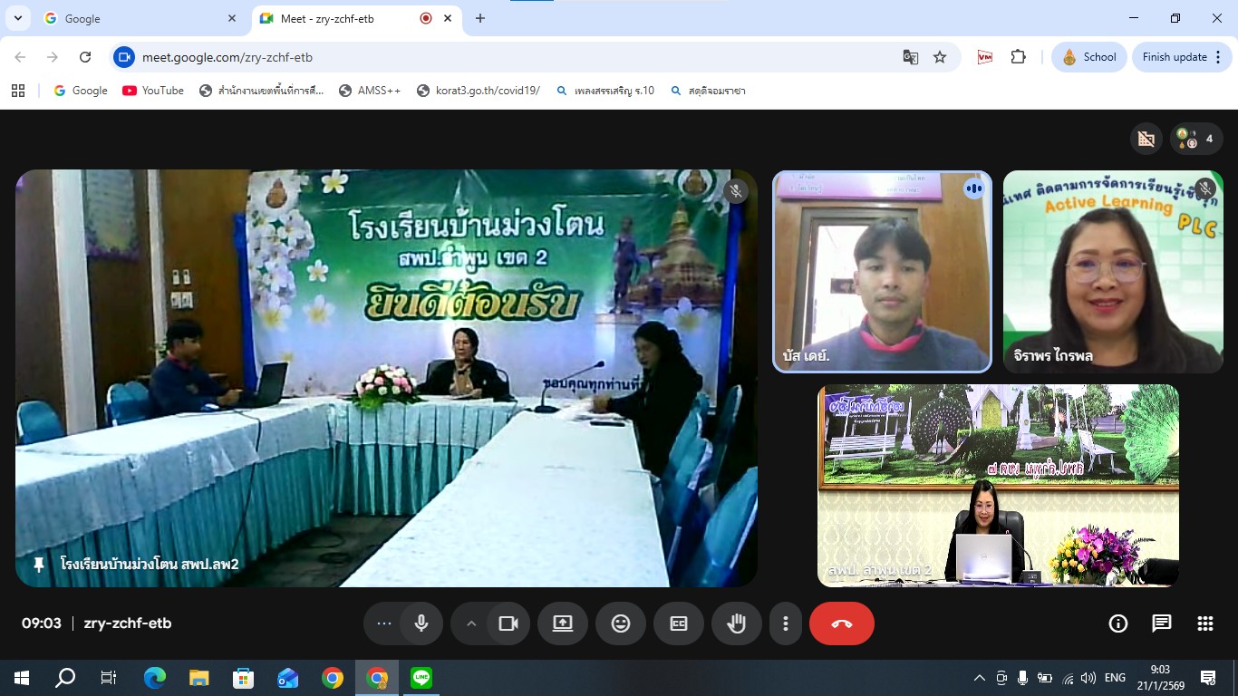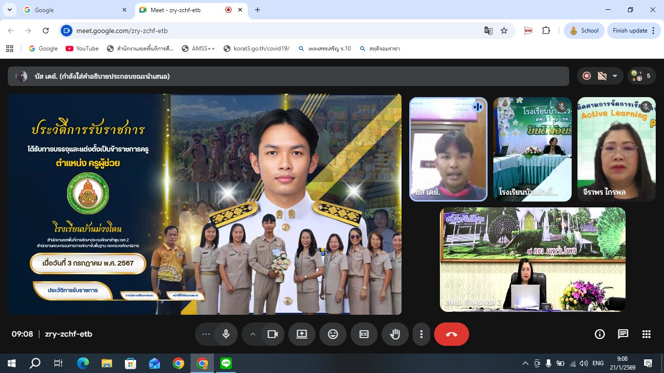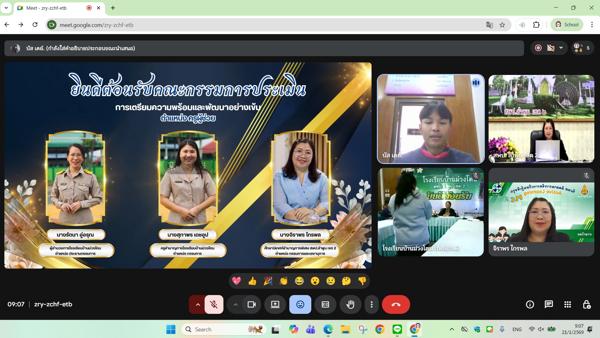 ประเมินการเตรียมความพร้อมและพัฒนาอย่างเข้มครูผู้ช่วย โรงเรียนบ้านม่วงโตน ผ่านระบบ Google meet
