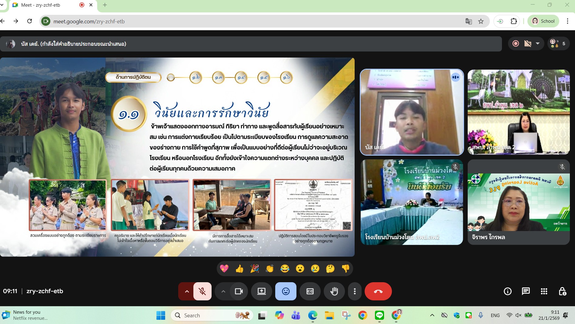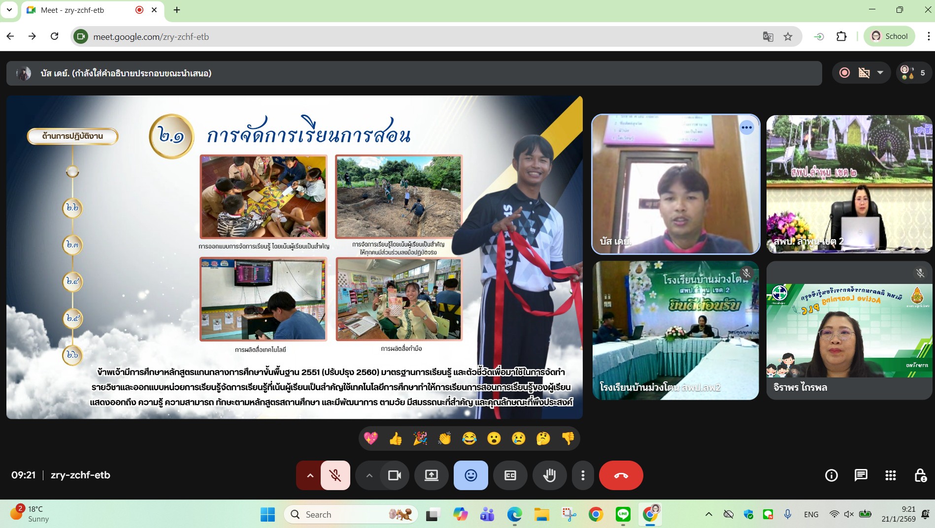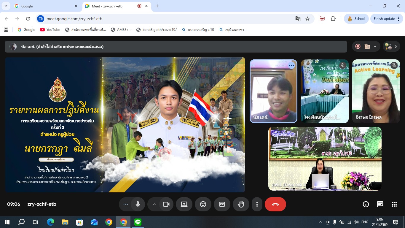 ประเมินการเตรียมความพร้อมและพัฒนาอย่างเข้มครูผู้ช่วย โรงเรียนบ้านม่วงโตน ผ่านระบบ Google meet