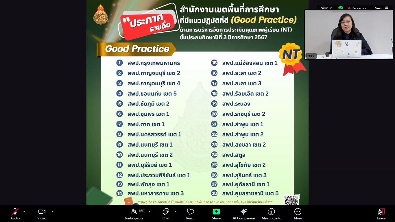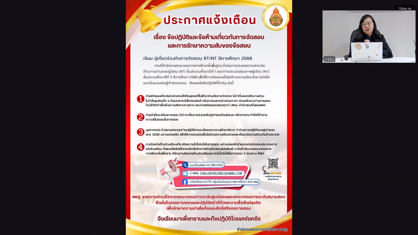 ประชุมชี้แจงแนวทางการดำเนินการคัดเลือกสำนักงานเขตพื้นที่การศึกษาที่มีแนวปฏิบัติที่ดี (Good Practice) ด้านการบริหารจัดการประเมินความสามารถด้านการอ่านของผู้เรียน (RT) ชั้นประถมศึกษาปีที่ 1 และ/หรือ การประเมินคุณภาพผู้เรียน (NT) ชั้นประถมศึกษาปีที่ 3 ปีการศึกษา2568