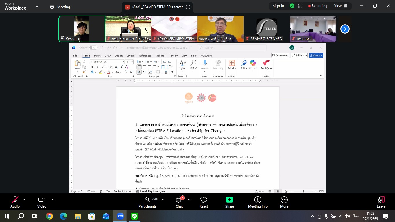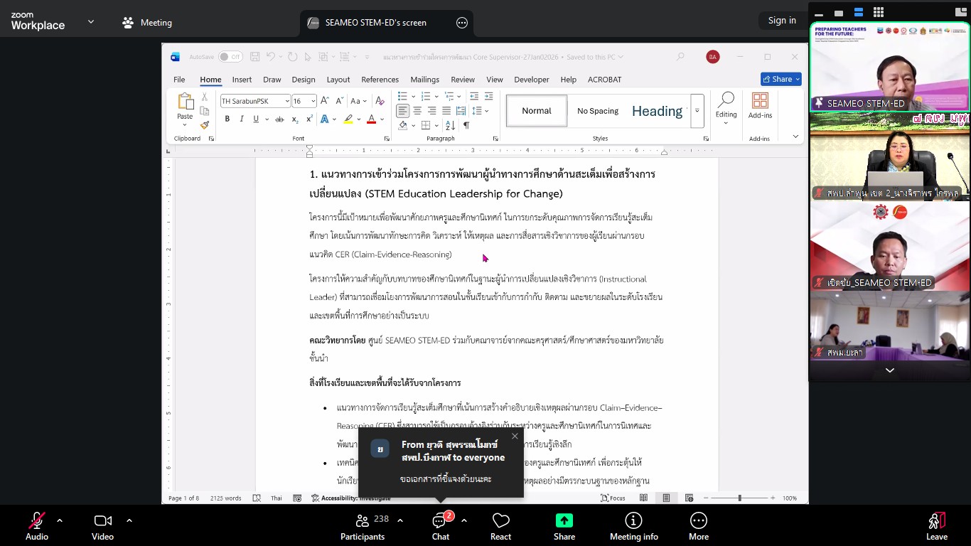 ในวันที่ 27 มกราคม 2569 เวลา 09.30 น. ดร.ดวงใจ ถวิลไพร ผู้อำนวยการสำนักงานเขตพื้นที่การศึกษาประถมศึกษาลำพูน เขต 2 มอบหมายให้ นางจิราพร ไกรพล ศึกษานิเทศก์ชำนาญการพิเศษ เข้าร่วมการประชุมชี้แจง เรื่อง แนวทางการคัดเลือกและสื่อสารโรงเรียนเข้าร่วมโครงการพัฒนาสมรรถนะการจัดการเรียนรู้ (3 โครงการย่อย) ผ่านระบบออนไลน์ สำหรับศึกษานิเทศก์แกนนำ (Core Supervisor) ครั้งที่ 1 ณ ห้องประชุม 2 สำนักงานเขตพื้นที่การศึกษาประถมศึกษาลำพูน เขต 2 เพื่อทบทวนและชี้แจงภาพรวมของโครงการอบรมเชิงปฏิบัติการเสริมสมรรถนะการนิเทศการศึกษา (ร่วมกับ คุรุสภา สพฐ. และ SEAMEO STEM-ED) และชี้แจงเกณฑ์และเงื่อนไข (Check List) สำหรับการคัดเลือกโรงเรียนนำร่องที่มีความพร้อมตามบริบทของแต่ละกิจกรรมร่วมกันพิจารณาความเหมาะสมและเสนอแนะแนวทางการเข้าร่วมโครงการ