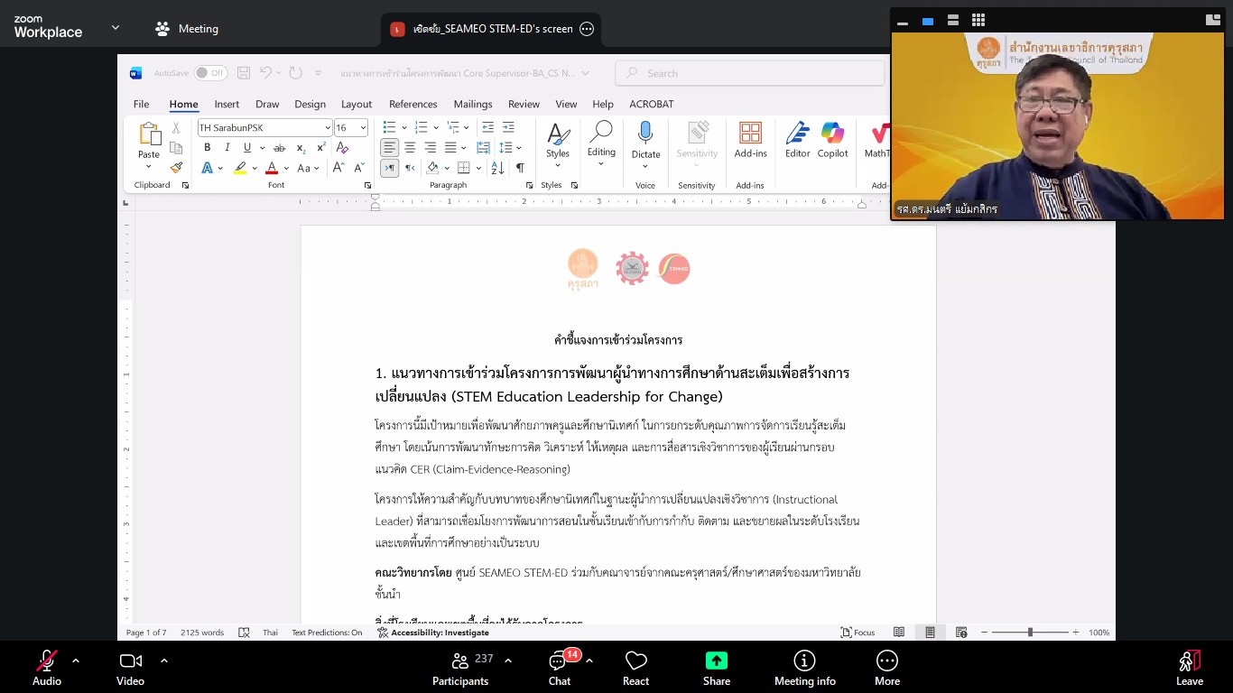 การประชุมชี้แจงแนวทางการคัดเลือกและสื่อสารโรงเรียนเข้าร่วมโครงการพัฒนาสมรรถนะการจัดการเรียนรู้ (3 โครงการย่อย) สำหรับศึกษานิเทศก์แกนนำ (Core Supervisor) ครั้งที่ 1