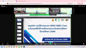 การประชุมทางไกล Upskill ผู้รับผิดชอบระบบ HERO OBEC Care ระดับเขตพื้นที่การศึกษา (Area Admin เขตพื้นที่การศึกษา) ปีการศึกษา 2568