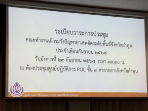 การประชุมคณะทำงานเฝ้าระวังปัญหายาเสพติดระดับพื้นที่จังหวัดลำพูน ประจำเดือนกันยายน 2568