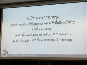 ประชุมคณะทำงานเฝ้าระวังปัญหายาเสพติดระดับพื้นที่จังหวัดลำพูน ประจำเดือนพฤศจิกายน