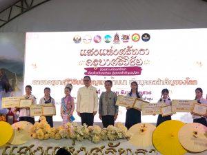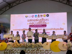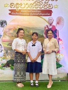 โอกาสเดียวกันนี้ เด็กหญิงปานชนก เพิ่มลาภทวีโชค นักเรียนโรงเรียนบ้านม่วงสามปี และเด็กหญิงนีรัมพร สีขาวนวลผ่องนักเรียนโรงเรียนชุมชนบ้านป่าไผ่ เข้ารับมอบเกียรติบัตรและเงินรางวัลการประกวดเขียนเรียงความ เรื่อง อัตชีวประวัติ วัตรปฏิบัติ ผลงาน คำสอน บารมีของครูบาศรีวิชัย นักบุญแห่งล้านนา หัวข้อ “เรื่องเล่าครูบาศรีวิชัยที่บ้านฉันและบ้านเพื่อน” จากผู้ว่าราชการจังหวัดลำพูน